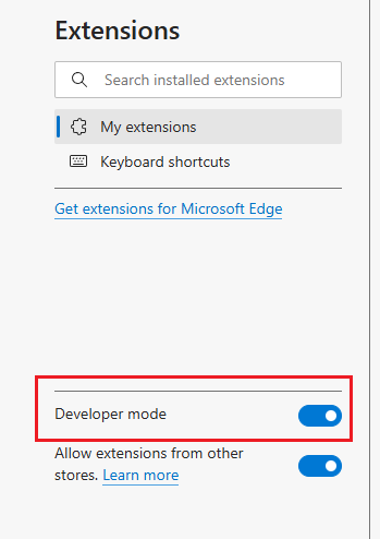 - Enable “Developer mode” (toggle in the top right corner)